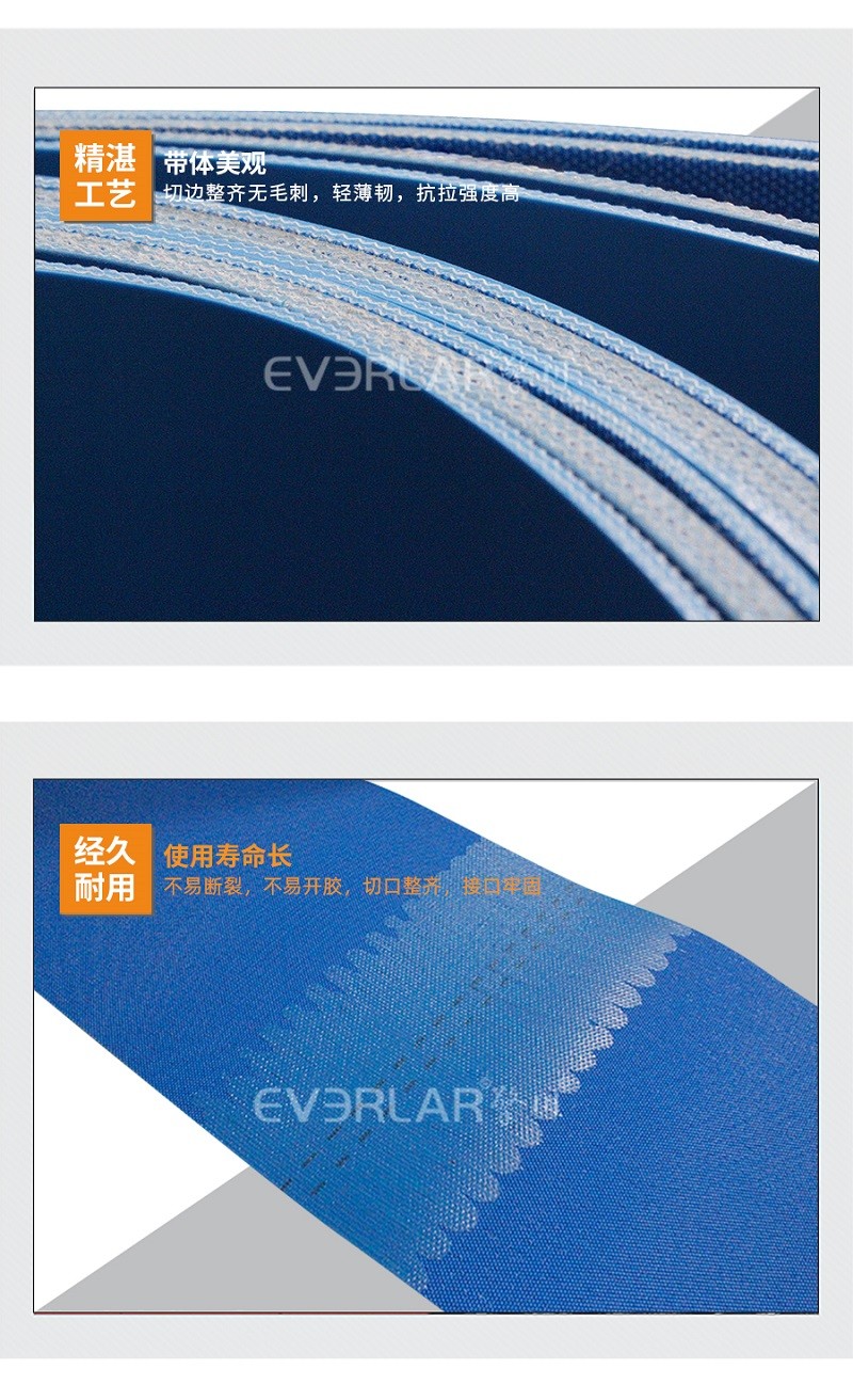 樣品名稱 | 藍(lán)色PU食品輸送帶 | 接駁方式 | 齒接環(huán)帶 |