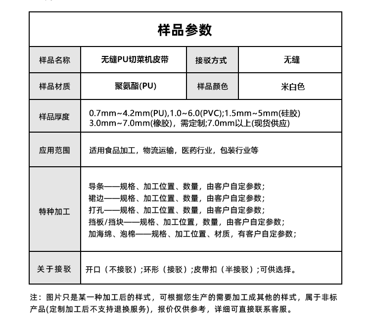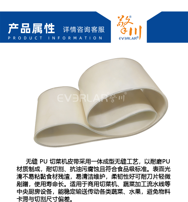 產(chǎn)品名稱:無(wú)縫PU切菜機(jī)皮帶抗撕裂防油污中央廚房全自動(dòng)切菜設(shè)備輸送帶