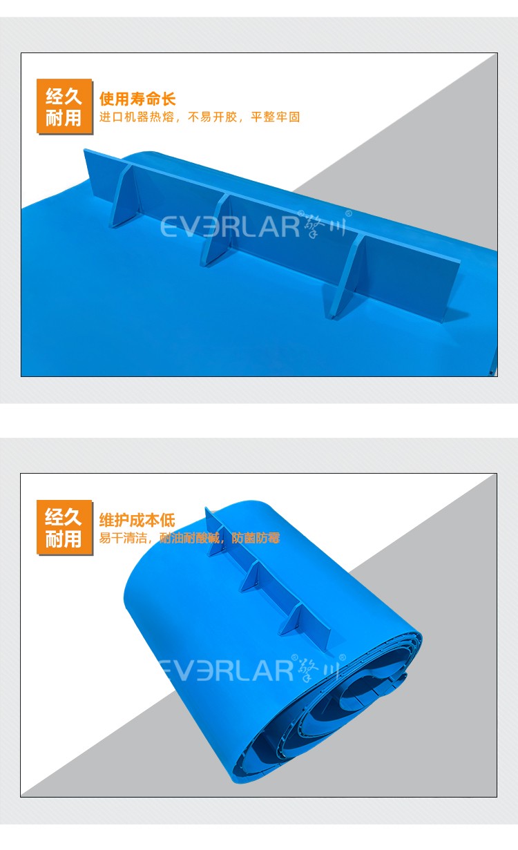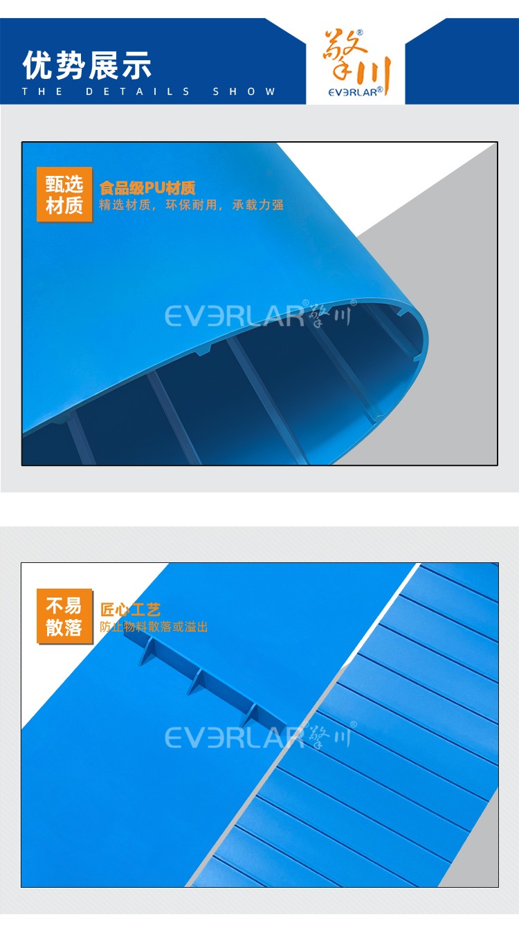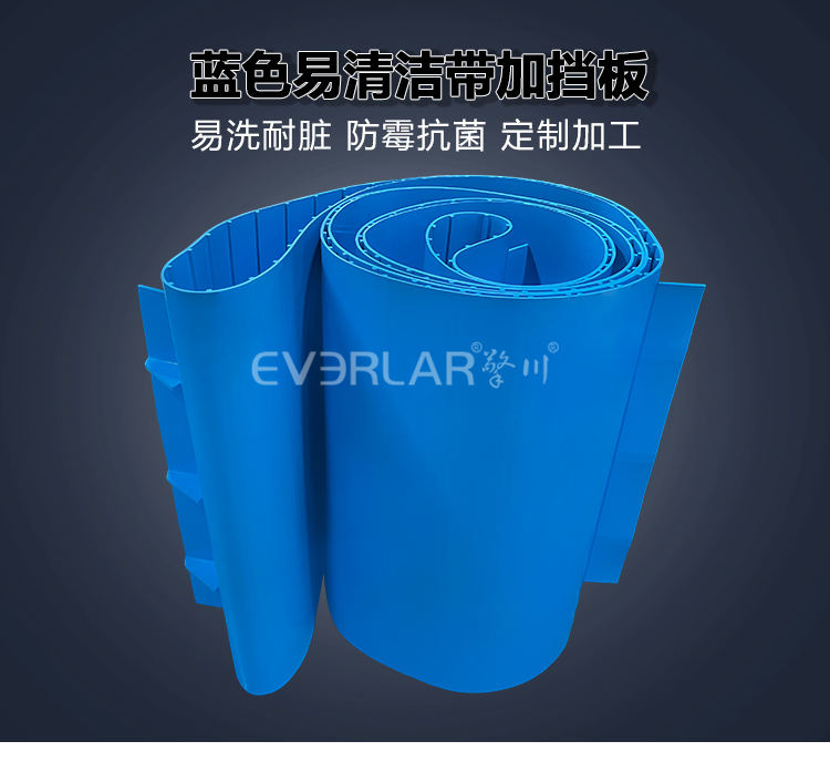 • 產(chǎn)品名稱:易清潔TPU加擋板輸送帶藍(lán)色食品級防溢抗污生產(chǎn)線設(shè)備傳送帶