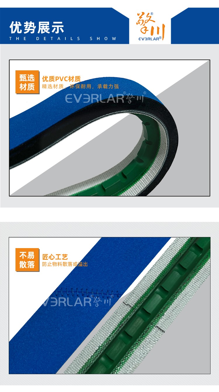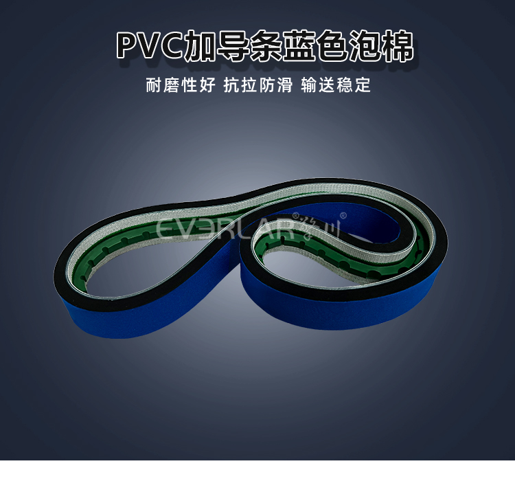 • 產(chǎn)品名稱:PVC藍(lán)布泡棉導(dǎo)條輸送帶耐磨緩沖包裝物流包裝機輸送線皮帶