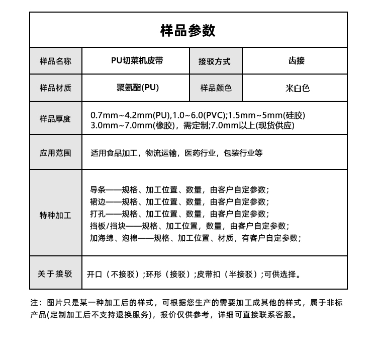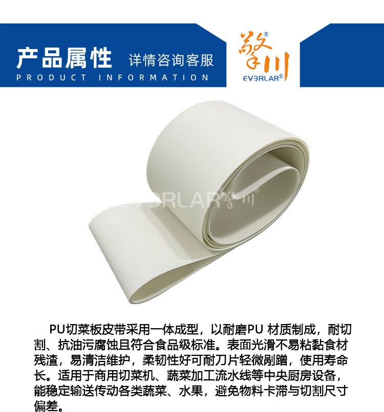 產(chǎn)品名稱:食品級PU切菜板皮帶耐切割易清潔中央廚房蔬菜加工流水線輸送帶