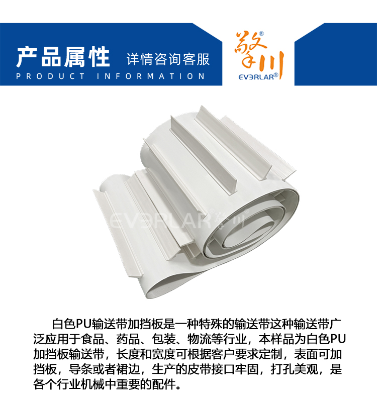 • 產品名稱:食品級白色PU輸送帶加擋板防滑落耐磨食品包裝分揀線傳送帶定制