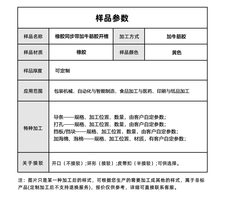 • 產(chǎn)品名稱:橡膠同步帶加牛筋膠開槽耐磨防滑食品包裝生產(chǎn)線傳動皮帶